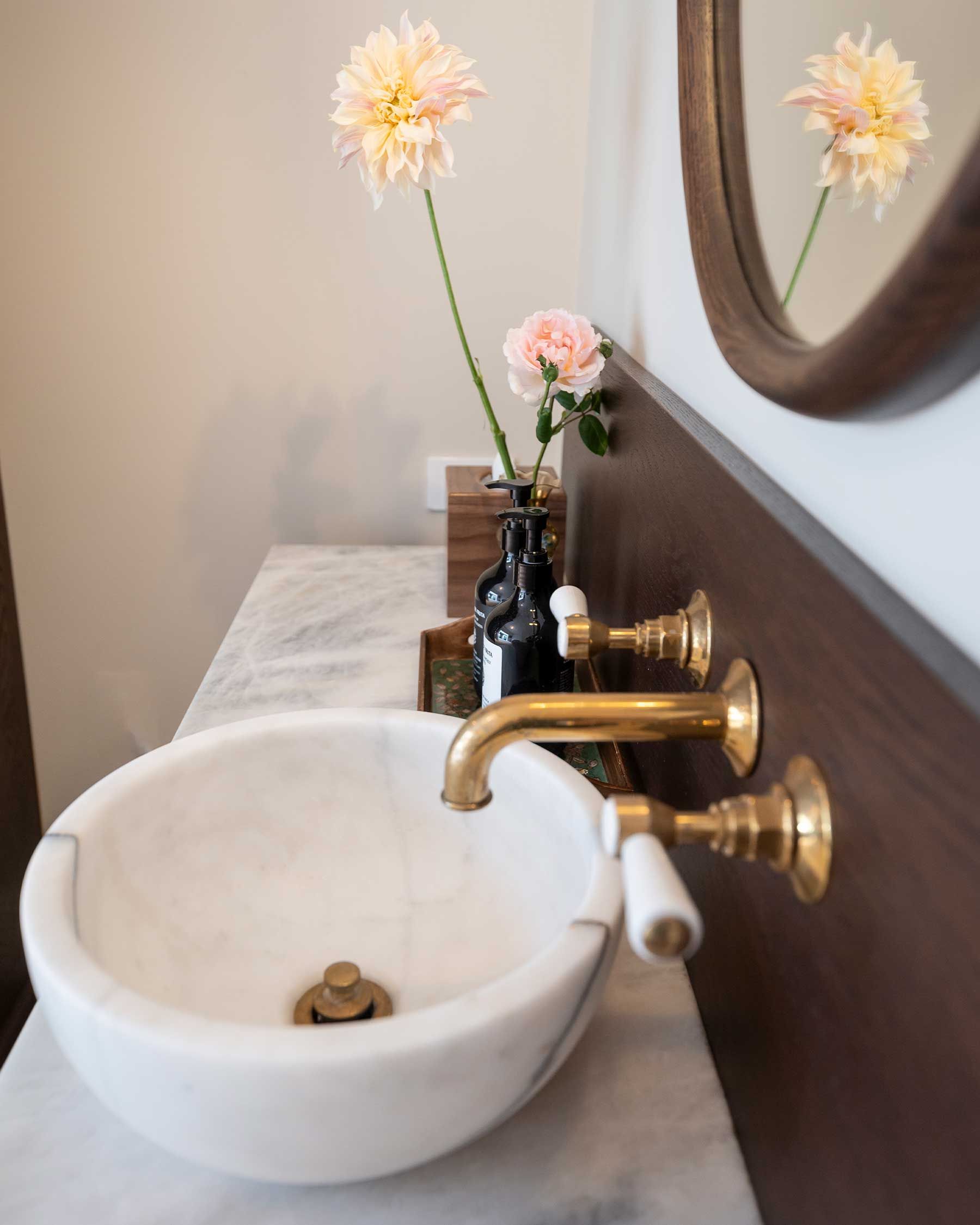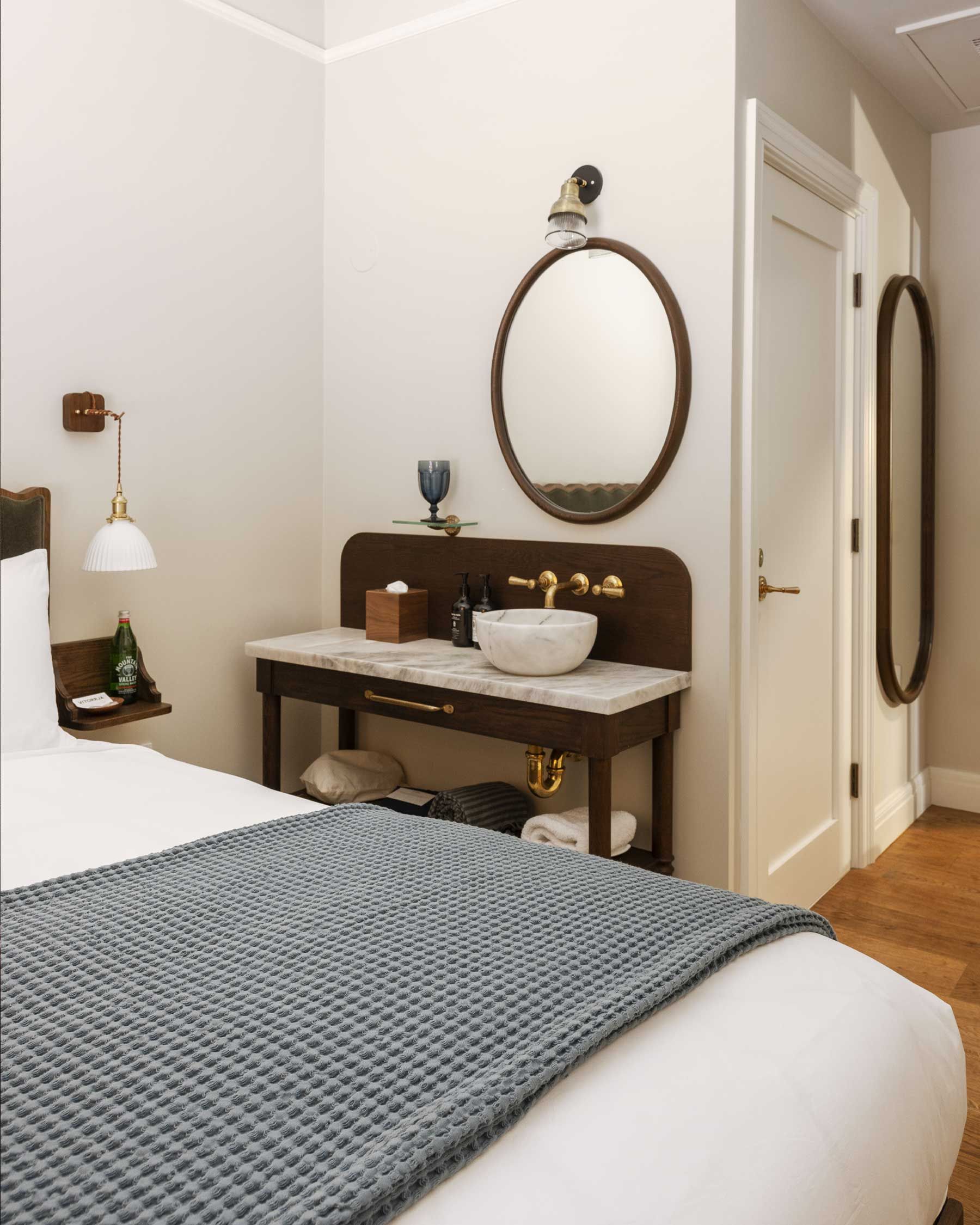 The coziest of our room options, Small Double Rooms are located on the ground floor, framing our intimate outdoor courtyard. Each room includes a full-sized bed, en suite marble sink & vanity, and is detailed with custom furnishings and artwork.