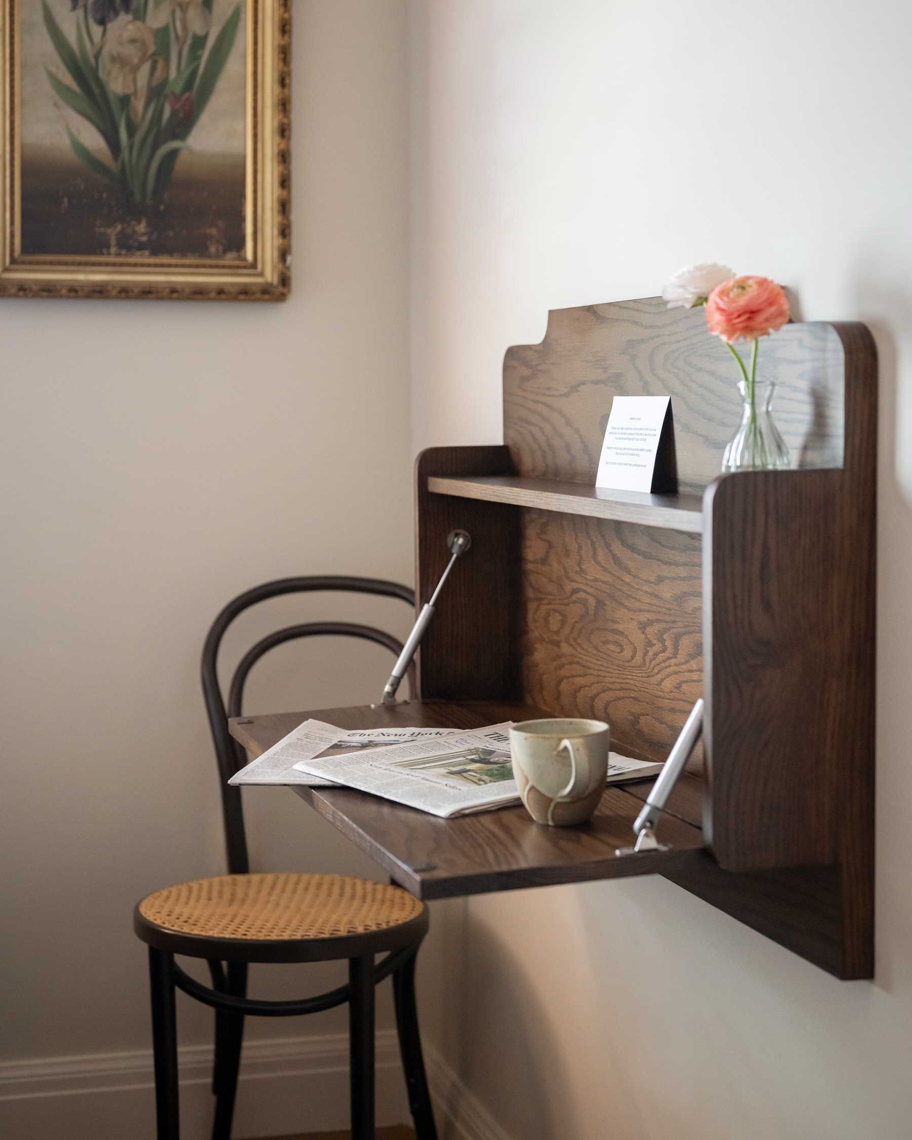 Our standard room — considered, utilitarian, and comfortable, Small Queen Rooms are equipped with the essentials, each including a fold-down desk & custom furnishings. Located on the ground floor, with select rooms that overlook our intimate courtyard.