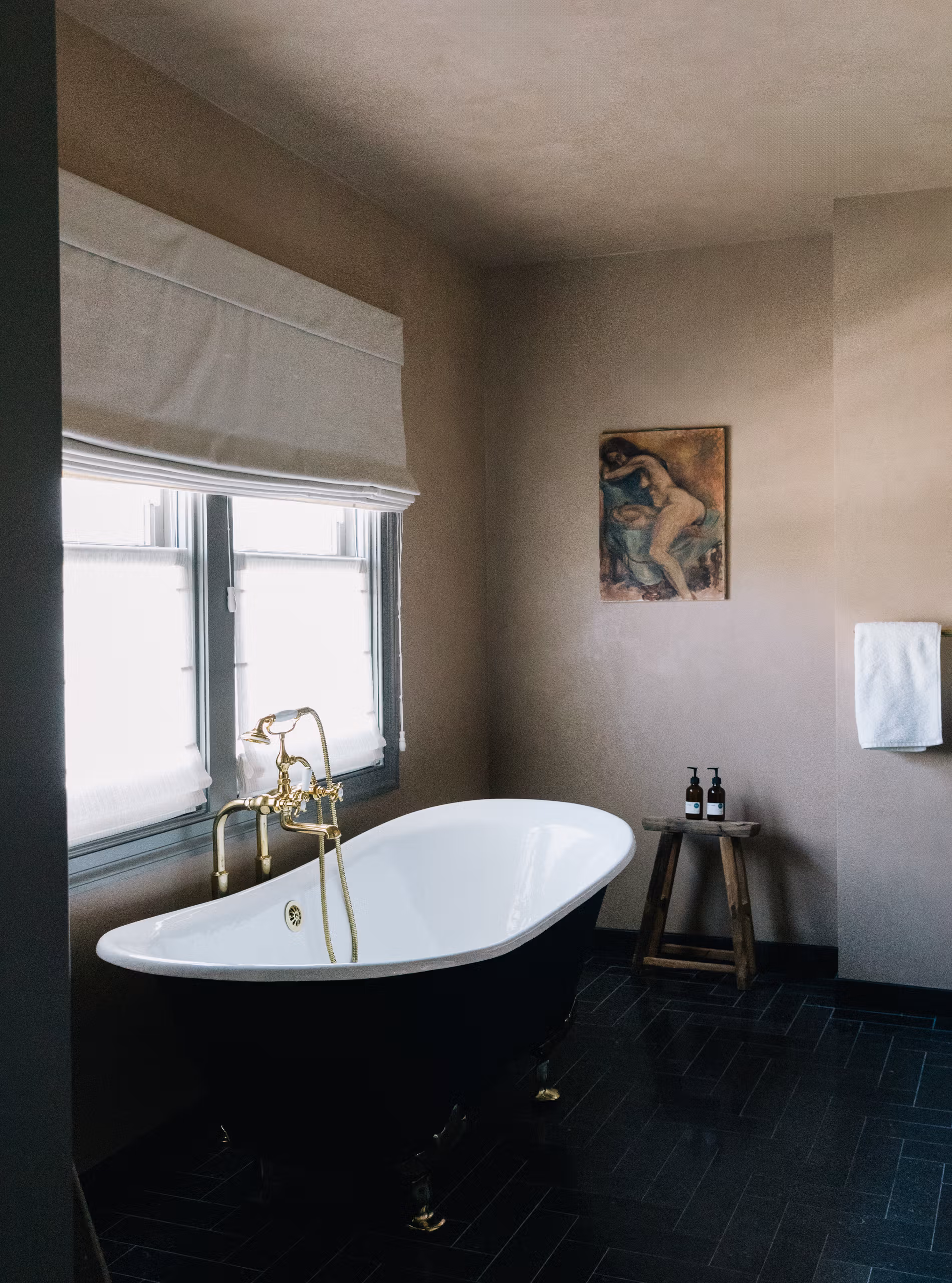 A spacious secon d floor suite with dedicated space for living and dining — with windows that look out on Venice Beach and the Pacific. A bedroom with a king-sized bed is separated from the living spaces by sliding doors that close to offer privacy and quiet, while a large bathroom is appointed with a full-sized bathtub and shower. Our upstairs suites also offer access to our private second floor garden terrace.
